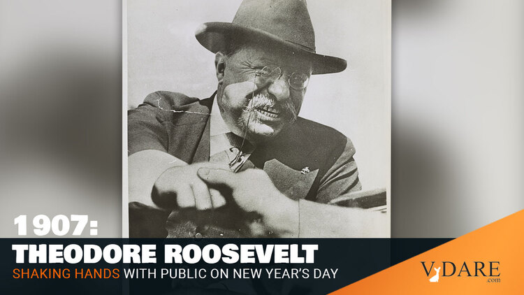 Back around 1900, a popular vaudeville song was “Let Me Shake the Hand that Shook the Hand of John L. Sullivan,” the last heavyweight bareknuckle boxing champion. In those days, people were apparently fascinated by the thought of being linked to the famous via a series of handshakes. This likely helps explain why on New Year’s Day 1907, over 8,500 members of the public lined up and shook the hand of president Theodore Roosevelt (which is the most 1907 thing I can imagine: Picture a sped-up silent movie of Teddy vigorously pumping the hands of the citizenry).