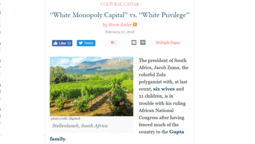 “White Monopoly Capital” vs. “White Privilege”Read the whole thing there.by Steve Sailer, February 07, 2018