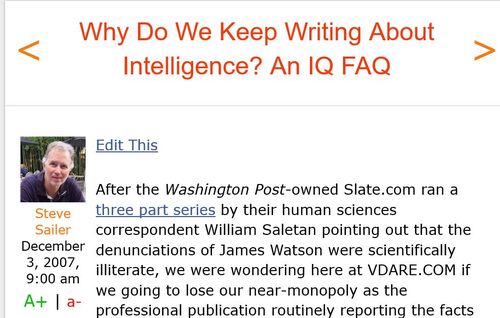 Way back in 2007, I wrote a Frequently Asked Questions list about IQ for VDARE. I’m sure it’s somewhat out of date by now, but here are some excerpts, slightly edited: