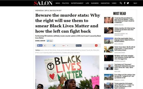Beware the murder stats: Why the right will use them to smear Black Lives Matter and how the left can fight backHmmhmmhmmm …WEDNESDAY, SEP 14, 2016 12:12 PM PDT