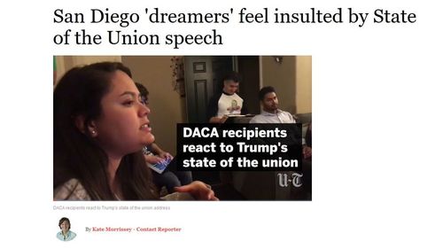 San Diego ‘dreamers’ feel insulted by State of the Union speech, San Diego Union Tribune, January 30, 2018DACA recipients react to Trump’s state of the union address