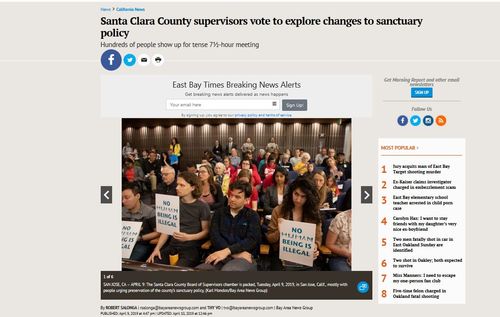 Santa Clara County supervisors vote to explore changes to sanctuary policy, San Jose Mercury News, April 9, 2019