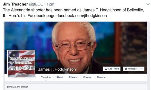 The Alexandria shooter has been named as James T. Hodgkinson of Belleville, IL. Here's his Facebook page. https://t.co/7zeVzkd9Nd pic.twitter.com/IDBlT9F0m5