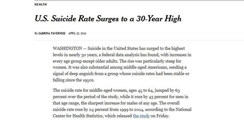 Writing about a new report from the National Center for Health Statistics, reporter Sabrina Tavernise tells us that "the data analysis provided fresh evidence of suffering among white Americans."