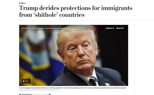 Trump attacks protections for immigrants from ‘shithole’ countries, by Josh Dawsey, New York Times, January 11, 2018