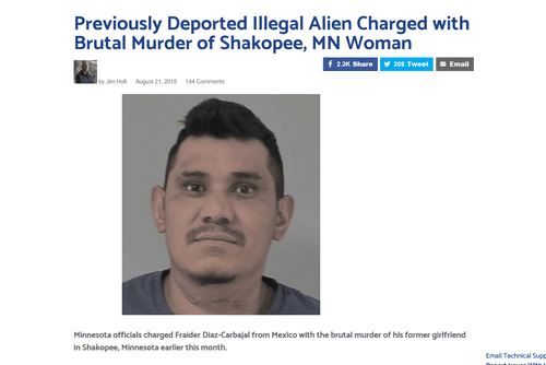 Minnesota officials charged Fraider Diaz-Carbajal from Mexico with the brutal murder of his former girlfriend in Shakopee, Minnesota earlier this month.
