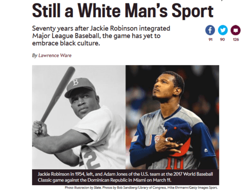 Still a White Man’s SportIf you added Yasiel Puig’s IQ to Pedro Guerrero’s IQ, would you need 3 digits?Seventy years after Jackie Robinson integrated Major League Baseball, the game has yet to embrace black culture.