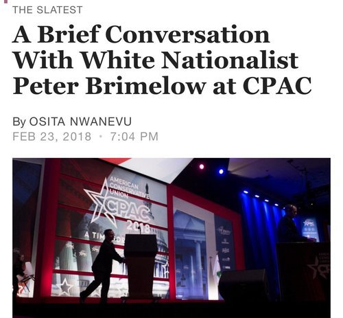 A Brief Conversation With White Nationalist Peter Brimelow at CPACPrevious items featuring Osita Nwanevu:Peter Brimelow is the founder of the white nationalist site VDare and a former editor at National Review. He was touring CPAC’s exhibition hall with his wife, Lydia, on Friday evening. This interview has been condensed and lightly edited for clarity.