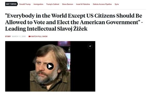 Old Slavoj does have kind of a point there about American elites’ reigning philosophy of Invade the World / Invite the World.“Everybody in the World Except US Citizens Should Be Allowed to Vote and Elect the American Government” – Leading Intellectual Slavoj Žižek