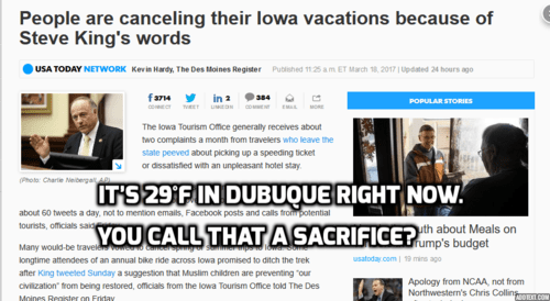 People are canceling their Iowa vacations because of Steve King’s wordsCommenter Kyle McKenna observes: