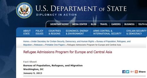 Refugee Admissions Program for Europe and Central AsiaThe reader writes:Fact Sheet Bureau of Population, Refugees, and Migration