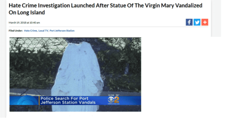 Hate Crime Investigation Launched After Statue Of The Virgin Mary Vandalized On Long Island, CBS New York, March 19, 2018