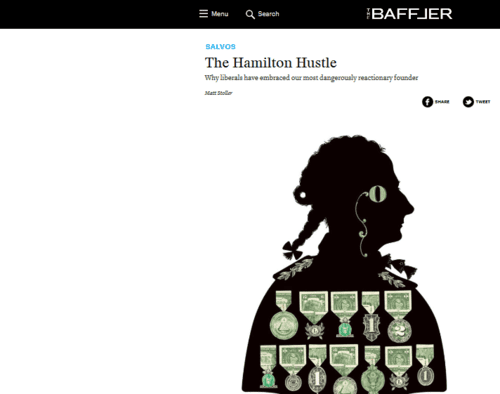… But Alexander Hamilton simply didn’t believe in democracy, which he labeled an American “disease.” He fought—with military force—any model of organizing the American political economy that might promote egalitarian politics. He was an authoritarian, and proud of it. …To the people paying four figures for a ticket, that’s a feature not a bug.Indeed, most of Hamilton’s legacy is astonishingly counter-democratic. His central role in founding both the financial infrastructure of Wall Street and a nascent military establishment (which supplanted the colonial system of locally controlled democratic militias) was rooted in his self-appointed crusade to undermine the ability of ordinary Americans to govern themselves.