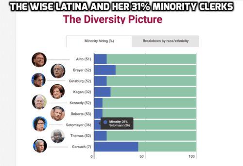 You'll notice that the highest number of "minority" clerks is under Gorsuch, but that's three out of seven—he just got there.