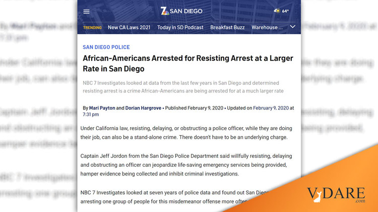 African-Americans Arrested for Resisting Arrest at a Larger Rate in San Diego