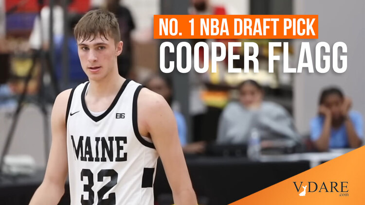 Cooper Flagg, the top high school prospect, is a 6’8″ white guy from the middle of Maine, a small town outside of Bangor. After a fine HS freshman year, he transferred to a Florida private school that specializes in foreign basketball players like Cameroon’s Joel Embiid.