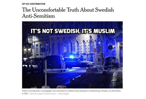 As Neuding points out, the facts of what’s going on in Sweden just doesn’t fit the Narrative. So the op-ed is entitled The Uncomfortable Truth About Swedish Anti-Semitism. [December 14, 2017].