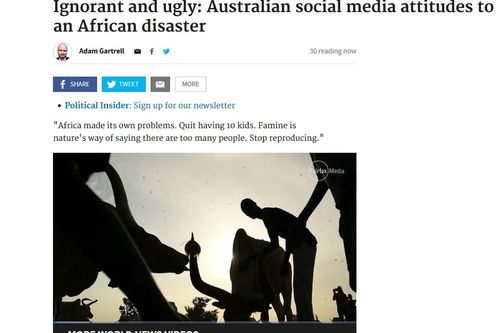 This comment by one Australian on social media attracted 23 likes. Even though the food crisis gripping East Africa is driven by civil war, drought and economic collapse – not overpopulation – it’s a common refrain among Australians posting on social media and news site comment sections.