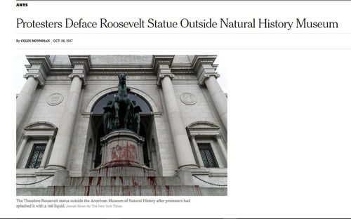 Protesters Deface Roosevelt Statue Outside Natural History MuseumBy COLIN MOYNIHAN OCT. 26, 2017