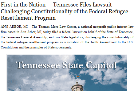 The powers not delegated to the United States by the Constitution, nor prohibited by it to the States, are reserved to the States respectively, or to the people.Tennessee’s complaint [PDF] tells the sorry story of the Ted Kennedy-sponsored Refugee Resettlement Act of 1980 and Tennessee. Senator Kennedy lied—as he had about the nation-breaking immigration “reform” of 1965—about the Act’s impact on communities. Over time the costs of supporting resettled refugees were shifted from the federal government—as the Act provides—to recipient states. Tennessee decided in 2007 to opt out of refugee resettlement because of the failure of federal funding, but State Department and HHS have coerced the state into taking refugees anyway through threats to cut its Medicaid funding.