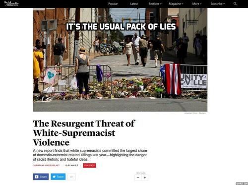 As you can tell from the picture used by the Atlantic, they count the death of Heather Heyer at Charlottesville as a murder, although it may been an accident. The full report is at Murder and Extremism in the United States in 2017.