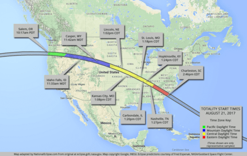 … On August 21, 2017, a total solar eclipse will arrive mid-morning on the coast of Oregon. The moon’s shadow will be about 70 miles wide, and it will race across the country faster than the speed of sound, exiting the eastern seaboard shortly before 3 p.m. local time. It has been dubbed the Great American Eclipse, and along its path live many black people.