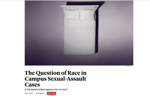 How race plays into the issue of campus sexual assault is almost completely unacknowledged by the government. While the Office for Civil Rights (OCR), which regulates how colleges respond to sexual assault, collects a lot of data on race, it does not require colleges and universities to document the race of the accused and accuser in sexual-assault complaints. An OCR investigator told me last year that people at the agency were aware of race as an issue in Title IX cases, but was concerned that it’s “not more of a concern. No one’s tracking it.”