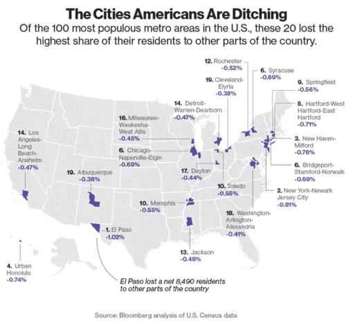 These Are the Top 20 Cities Americans Are DitchingSome of these cities are just Rust Belt cities in long-term decline, but the others are more interesting:Soaring costs of living meant residents left New York City and its suburbs in droves by Erin Roman Wei Lu July 22, 2015 — 3:00 AM PDT