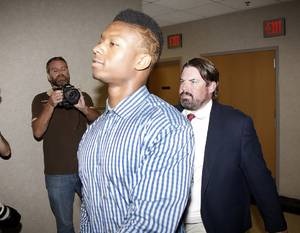 Exhibit A(iii): Black guy Dorial Green-Beckham is yet another football player, a wide receiver. He transferred to the University of Oklahoma from the University of Missouri last summer. Why did he do that? Well, because he was dropped from the Missouri football team last April after several arrests, the last one for forcing his way into a woman's home, violently threatening her, and then pushing another woman down a flight of stairs. Both women were 18 years old. Luckily for Green-Beckham the women declined to press charges, otherwise he'd have been up for burglary and assault.
