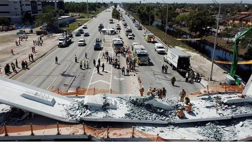 [FIU pedestrian bridge collapses days after installation; police say multiple deaths, cars trapped, by Andres Viglucci, Monique Madan, Douglas Hanks, and Daniel Chang, Miami Herald, March 15, 2018]