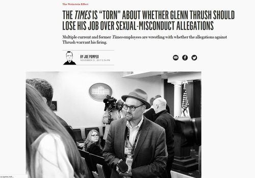 Why? And who changed the rules? For example, VDARE.com has been scathingly critical of the New York Times' immigration enthusiast reporter Glenn Thrush. But what Thrush is accused of is making passes (allegedly boorishly) at young women–not rape. Newsrooms, like political campaigns, are sexually-charged places. (And these passes can be well-received, even invited, but that's another story). When did this become a crime?