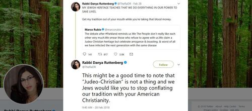 Anyway, Marco’s rather affecting lament merely reminds Rabbi Ruttenberg that gentiles using the phrase “Judeo-Christian” just drives her crazy with anti-Christian animus: