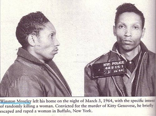 First, I had never heard until very recently that the murderer, Winston Moseley, was black. A historic black crime wave was washing over New York City in 1964, but the race of the confessed killer wasn’t mentioned in the famous NYT article. In fact, I don’t recall the killer’s race ever being mentioned in the 1960s/1970s. As a child, I just assumed he looked like all the muggers in cartoons then. I can see now that mentioning that the killer was black would have been distracting from the political lessons White America was supposed to be draw at the climax of the Civil Rights era.