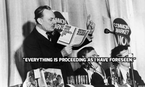 As noted by Steve Sailer below, the Enoch Powell speech was read on the BBC by Ian McDiarmid, who played Emperor Palpatine/Darth Sidius in some Star Wars movies. You have to assume this is because they wanted a villain to play Powell, but there's another, presumably unintended link—that character is most famous for saying: "Everything is proceeding as I have foreseen."