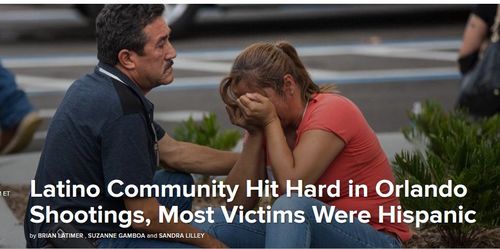 From the gay angle of the reporting you would never guess that thirty-six of the forty-eight victims were Latino. That number doesn’t encompass those wounded, whose names haven't been announced, but they are presumably mostly Latino as well.(Google allows us to quantify the emphasis in online reportage: a search for "Orlando Shootings + gay" = 2,310,000 hits on Google. "Orlando Shootings + Hispanic" = 165, 000 hits.)