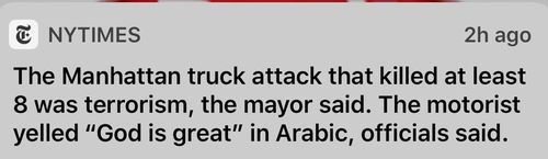 Next, the attacker was heard to shout "Allahu Akbar" by New Yorkers who are familiar with the phrase, but it keeps being reported like this: