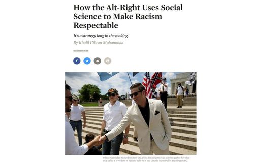 How the Alt-Right Uses Social Science to Make Racism RespectableNo comment.It’s a strategy long in the making.