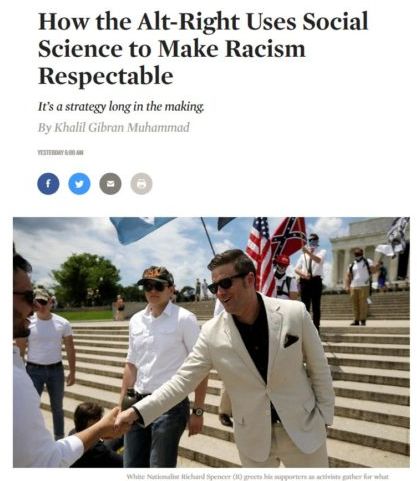 These days, much of the alt-right has gone mainstream, often cloaking its racism in pseudo-social-scientific theory. I first got a taste of this style of debate 10 years ago, when I criticized Bill Cosby in The Washington Post for his national tour emphasizing “personal responsibility,” in which he lambasted black America’s poorest and mass-incarcerated for their bad English, bad dress, and bad behavior. One reader called me out for supposedly hiding black crime rates, writing: “Blacks accounted for 13% of the U.S. population in 2005, but were victims in 15% of all nonfatal violent crimes and nearly half of all homicides.”Yet nowhere does Muhammad tell us whether the reader’s data are accurate, a typical tactic of the left. Rather, in dealing with such data, the leftist critics attaches scare quotes to them, suggesting that they are false, even if they aren’t.