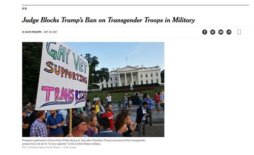 Judge Blocks Trump’s Ban on Transgender Troops in MilitaryAfter all, what Judge Colleen Kollar-Kotelly doesn’t know about the military isn’t worth knowing.By DAVE PHILIPPS OCT. 30, 2017