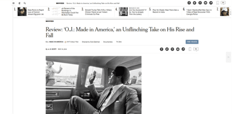 Review: ‘O.J.: Made in America,’ an Unflinching Take on His Rise and FallYou know, the O.J. Simpson story doesn’t really fit into The Narrative.O.J.: MADE IN AMERICA NYT Critics’ Pick Directed by Ezra Edelman Documentary 7h 30m