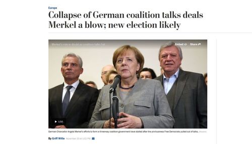 [Collapse of German coalition talks deals Merkel a blow; new election likely, by Griff Witte, Washington Post, November 20, 2017]