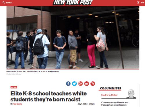 [Elite K-8 school teaches white students they're born racist, by Paul Sperry, New York Post, July 1, 2016]