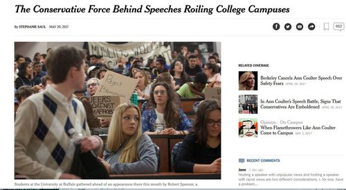 In the meantime, protesters have questioned whether such events are cynically intended to provoke reactions.Outside agitators!“It’s part of a larger systematic and extremely well-funded effort to disrupt public universities and create tension among student groups on campus,” said Alexandra Prince, a doctoral student at Buffalo who circulated a petition to block Mr. Spencer. …