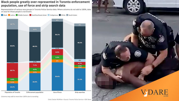 Over my lifetime, I’ve read at least 1,000 articles about how everybody is shocked, shocked to discover that local blacks get in disproportionately more trouble with the cops. I’ve never seen a local story (as opposed to an analysis in City Journal by Heather Mac Donald or the like) that says: “Local blacks get in more trouble per capita with the police than do other groups, but the exact same pattern is seen in every other city in North America, so it’s probably not the local cops’ particular fault.”