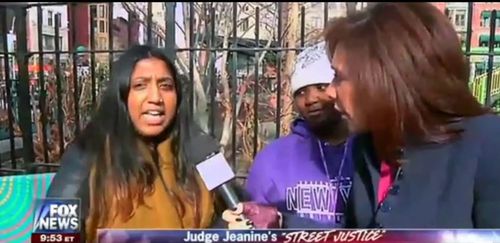 That's what we're up against, folks:  shrieking, incoherent lunacy, from — according to Judge Jeanine's prefatory remarks  — a college student.