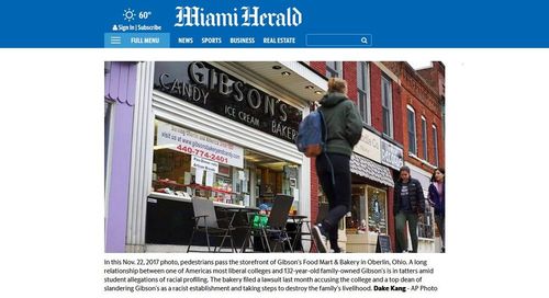 The dispute, which began in November 2016 with the arrest of three black Oberlin students who tried stealing wine from Gibson’s, is now a lawsuit in which the exasperated bakery owners accuse the college and a top dean of slandering Gibson’s as a “racist establishment” and taking steps to destroy the family’s livelihood. …
