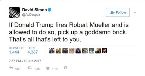 [‘The Wire’ Creator David Simon Banned From Twitter After Wishing Death To Trump Supporter, by Charlie Nash, Breitbart.com, June 11, 2018.]