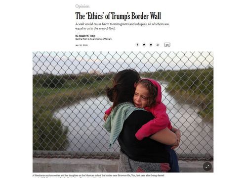 Cardinal Tobin is the archbishop of Newark.A wall would cause harm to immigrants and refugees, all of whom are equal to us in the eyes of God.