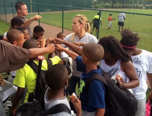 The late Officer Kerrie Orozco Coaching Children at the Boys & Girls Club