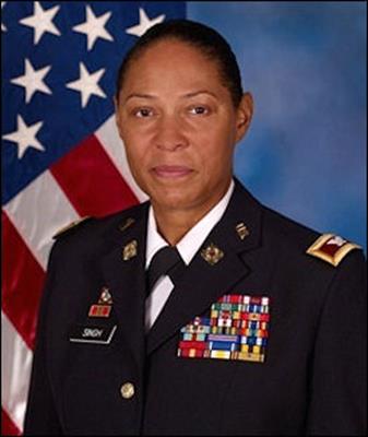 (But by 8:30 pm he had signed an Executive Order [PDF] declaring a State of Emergency and activating the Maryland National Guard—a promising sign, although at this point I don’t know if they’ll even be issued live ammunition. The lady mayor finally asked for the Guard, and the lady Brigadier General who is head of Maryland’s Army National Guard (Linda Singh, pictured below—despite her last name, the “first African-American” to head the Maryland Guard) stood beside him at a press conference, so they must be getting worried (Gov. Hogan Declares State of Emergency, Activates Md. National Guard, CBS Baltimore, April 27, 2015).
